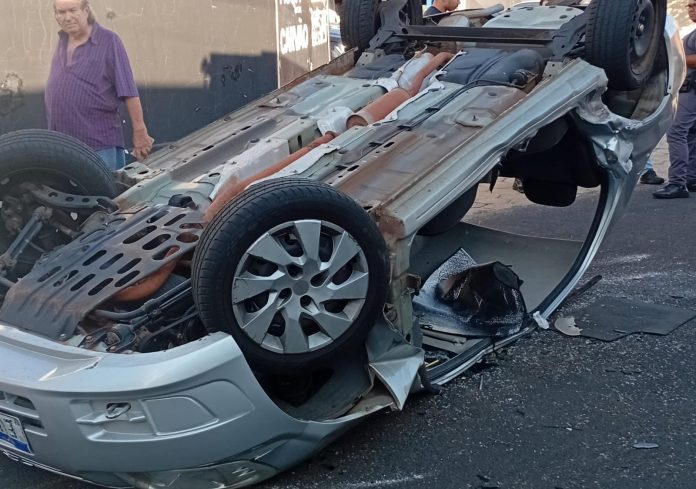 Uma jovem de 19 anos ficou ferida após um acidente entre um carro e uma caminhonete, que terminou em capotamento, na tarde desta quarta-feira (22), no bairro Vila Xavier, em Araraquara.
