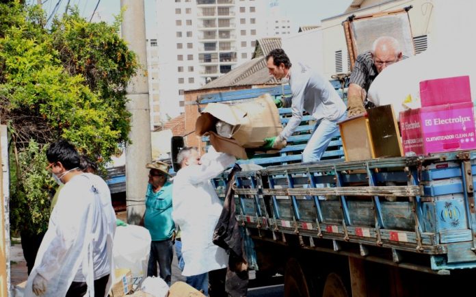 Os trabalhos são realizados nos bairros com maior incidência da doença e o recolhimento desses materiais objetiva evitar a proliferação dos criadouros do mosquito Aedes aegypti, causador da doença.