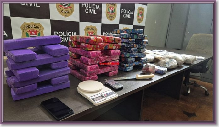 Em uma ação da Polícia Civil, um homem foi preso após a apreensão de cerca de 37 quilos de maconha em um imóvel usado para armazenar drogas, além de balanças de precisão e materiais ligados ao tráfico.