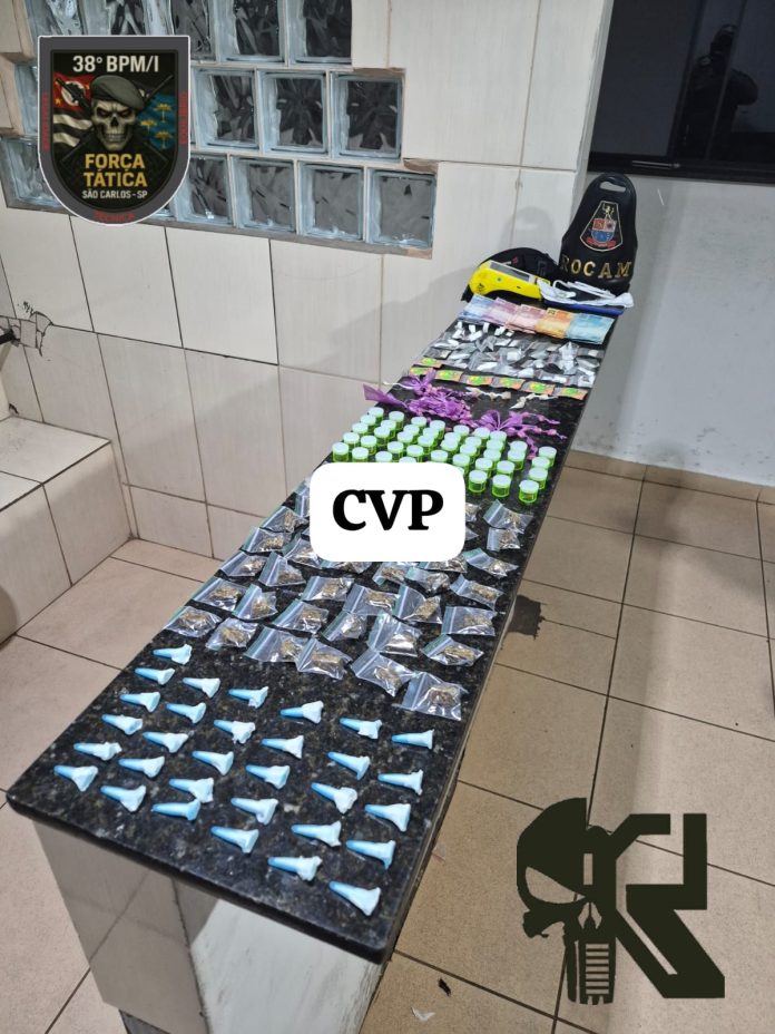 Um jovem de 16 anos foi apreendido por envolvimento com tráfico de drogas na noite de sábado (04), no bairro São Carlos VIII, em São Carlos. Durante patrulhamento, equipes da ROCAM e da Força Tática identificaram o suspeito em comportamento suspeito, carregando uma sacola e uma pochete.