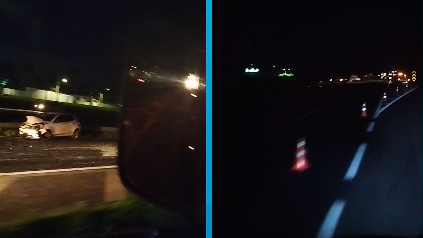 Segundo informações, o motorista de um veículo VW Gol tentou dar ré na pista da esquerda após passar a alça de acesso à cidade e foi atingido por um Fiat Argo. O Gol capotou e, em seguida, foi atingido por um caminhão guincho que vinha logo atrás na faixa da direita.