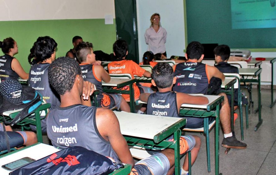 Durante a atividade, a profissional explicou todos os detalhes de uma alimentação ideal para os adolescentes e pré-adolescentes visando seu melhor crescimento e também uma prática segura do esporte.
