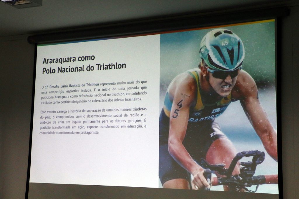 Araraquara anunciou oficialmente nesta terça-feira (23), no 6º andar do Paço Municipal, a realização do 1º Desafio Luisa Baptista de Triatlo, evento esportivo de grande porte, que deve acontecer em dezembro de 2026, com data a ser confirmada de acordo com o calendário da Confederação Brasileira de Triatlo (CBTri).