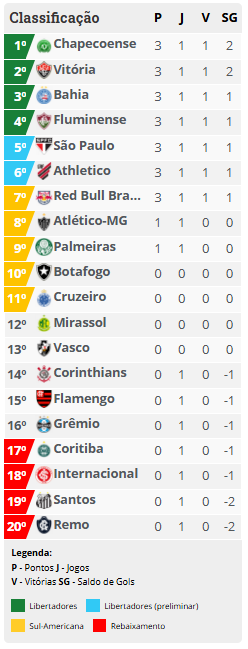 Já o Corinthians estreou com derrota mesmo atuando como mandante. Jogando na Vila Belmiro, o Timão foi superado pelo Bahia por 2 a 1. O alvinegro saiu na frente com Breno Bidon, mas o time baiano reagiu e virou o placar com gols de Jean Lucas e Willian José.