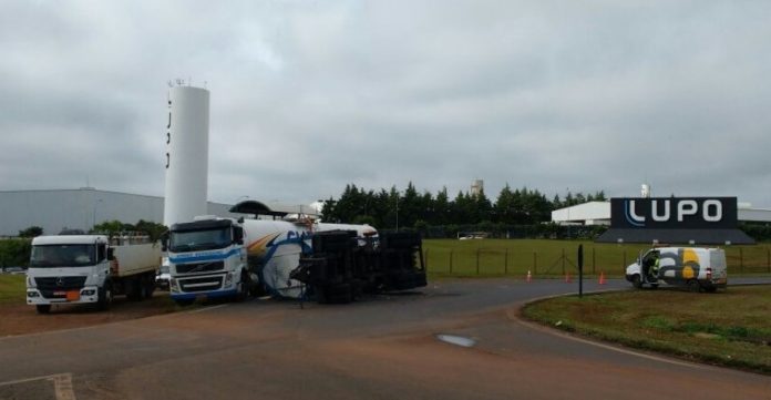 Um bi trem carregado com extrato de laranja tombou na rotatória da Lupo na madrugada desta quarta-feira (14). Segundo informações, o motorista perdeu o controle e a segunda composição acabou tombando ao passar pela rotatória.