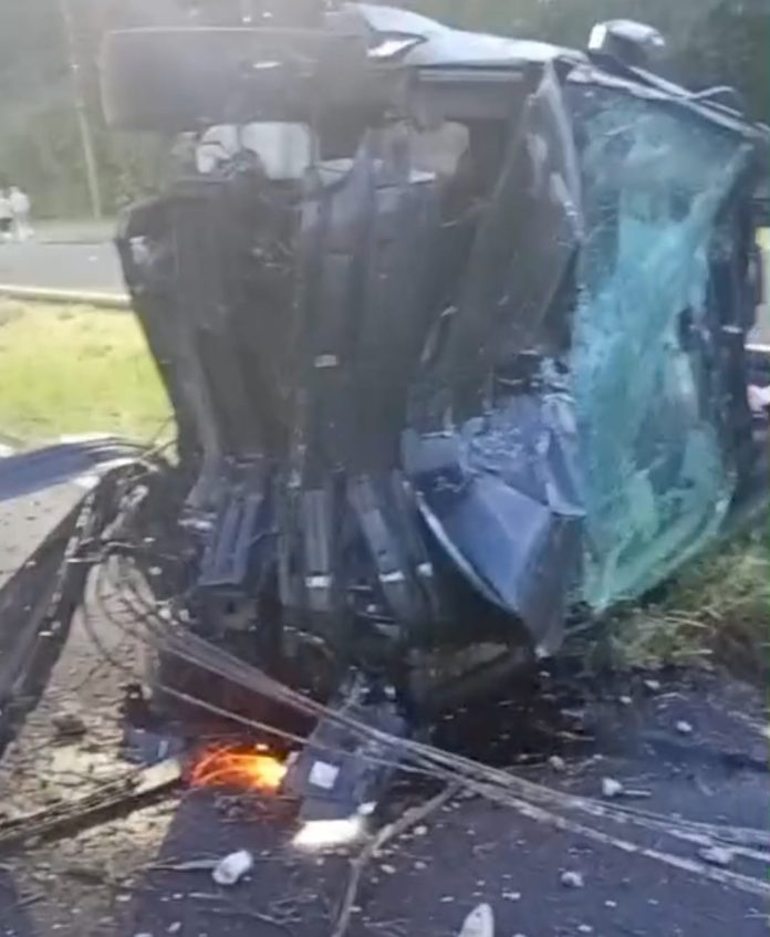 O carro, avaliado em cerca de R$ 100 mil, ficou destruído, e a colisão provocou queda de energia na região.