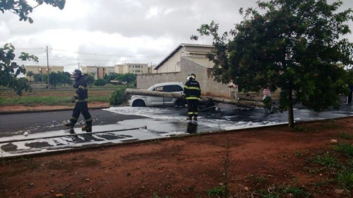 No final da manhã desta quarta-feira (11), um carro colidiu em um poste na Avenida Armando Biagioni, na Vila Xavier, em Araraquara. Com o impacto, o poste caiu e a fiação pegou fogo.