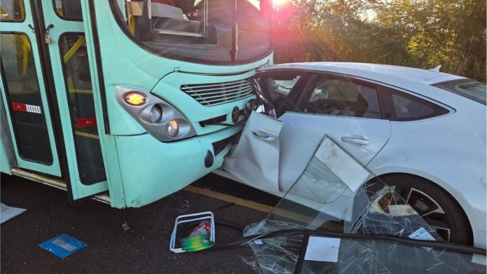 Um grave acidente envolvendo um veículo Audi e um Ônibus foi registrado na manhã deste sábado (14) na Rua Manoel Borba, entre Araraquara e Américo Brasiliense.