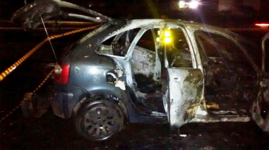 Os bombeiros foram acionados para controlar o incêndio. O carro ficou destruído.
