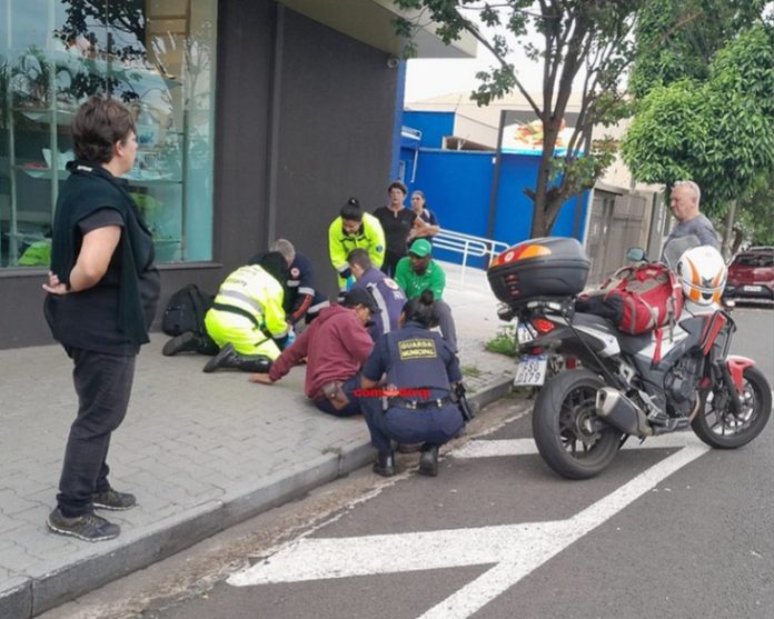 Na manhã desta segunda-feira (15), uma colisão entre duas motocicletas deixou três pessoas feridas no cruzamento da Rua Dona Alexandrina, com a Rua XV de Novembro, no centro de São Carlos.