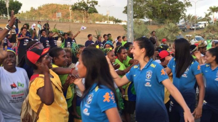 Por onde passa a Seleção Brasileira, seja a categoria que for, é recebida com festa. Com a Sub-20 Feminina, na Papua-Nova Guiné, para a Copa do Mundo, não foi diferente. Ao chegar na capital Port Moresby, após mais de 36 horas de viagem, a delegação teve uma grande recepção: com cartazes, músicas, roupas típicas e gritos de “Go, Brazil” – “Vai, Brasil”. O elenco brasileiro conta com três jogadoras da Ferroviária/Fundesport: a zagueira Luana e as volantes Julia e Nicoly.