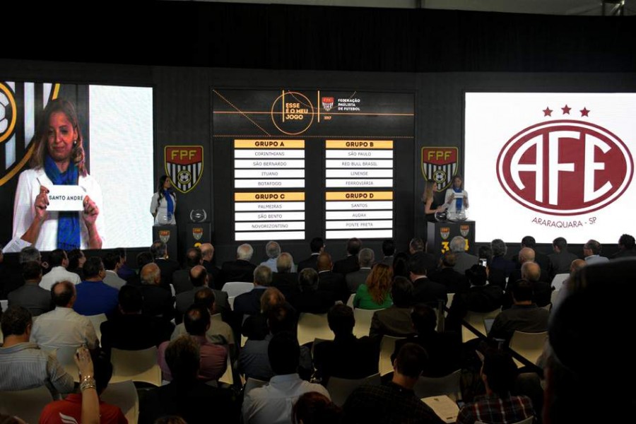 Em sorteio realizado na sede da Federação Paulista de Futebol, os grupos da primeira fase do Paulistão 2017 ficaram assim definidos: