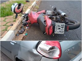 Motociclista fica ferido após colidir com carro na Vaz Filho