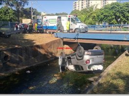 Em São Carlos, carro cai em córrego após ser atingido por...