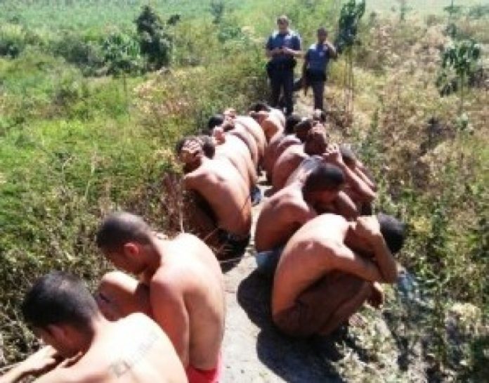A polícia continua em patrulhamento em busca de mais foragidos.