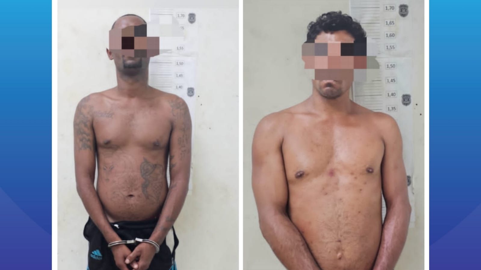As equipes da GCM conseguiram localizar os suspeitos na Praça do Santana. Ambos receberam voz de prisão, sendo necessário o uso de técnicas de imobilização e algemas. Os detidos foram apresentados na Delegacia de Polícia e encaminhados à cadeia pública.