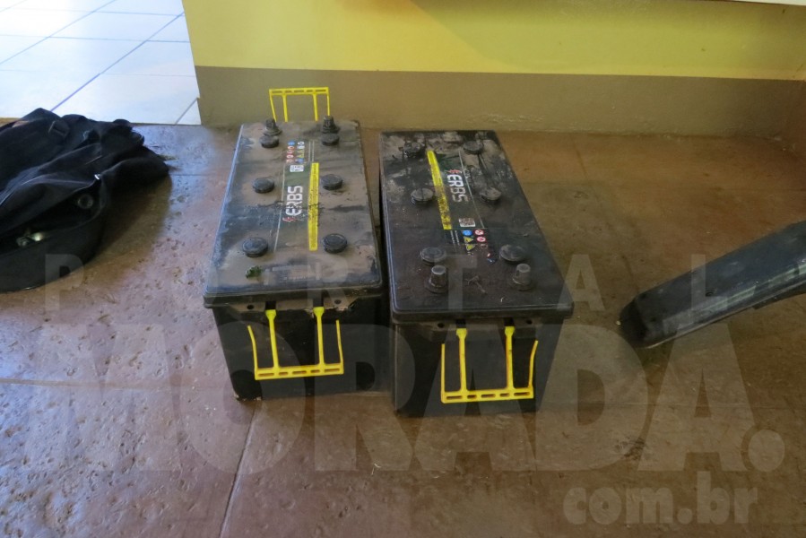 Dentro do carro foram encontradas caixas com ferramentas e duas baterias automotivas, que os indivíduos não souberam informar a procedência. Na casa de um deles foi localizado um quadro de motocicleta de origem suspeita.