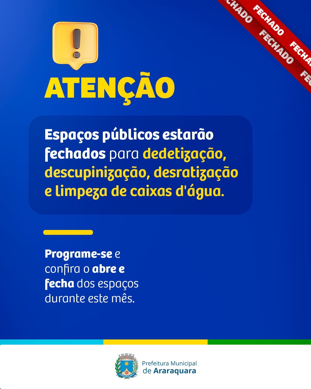 Programe-se e confira o abre e fecha dos espaços durante este mês; estão previstos os serviços de dedetização, descupinização, desratização e limpeza de caixas d'água