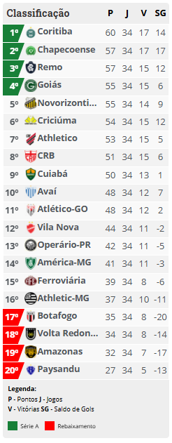 25ª rodada – Coritiba-PR 4 x 0 Ferroviária (05/09, 19h30)