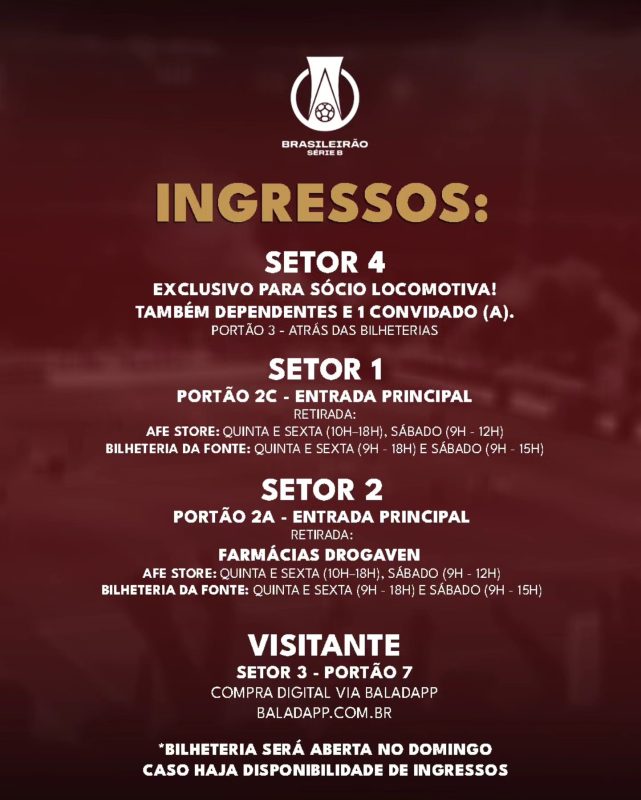 Depois do confronto na Fonte Luminosa, a Locomotiva fechará sua participação na Série B contra o Operário-PR, fora de casa. O clube aposta na força da torcida para manter vivo o sonho da permanência.