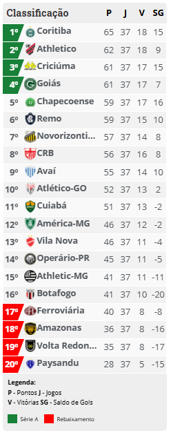 25ª rodada – Coritiba-PR 4 x 0 Ferroviária (05/09, 19h30)