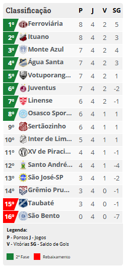 Com o resultado, a Locomotiva lidera a competição com 8 pontos (duas vitórias em casa e dois empates fora), mesma pontuação do Ituano, que tem três gols a menos de saldo. Já a Inter de Limeira perdeu sua invencibilidade e permanece com 5 pontos, na 10ª colocação, fora da zona de classificação para a segunda fase, que envolve os oito primeiros colocados.