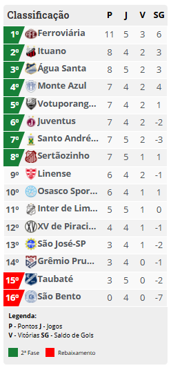 Com o resultado, a equipe araraquarense do técnico Rogério Corrêa assumiu a liderança isolada da competição, agora com 11 pontos e uma campanha de três vitórias e dois empates.