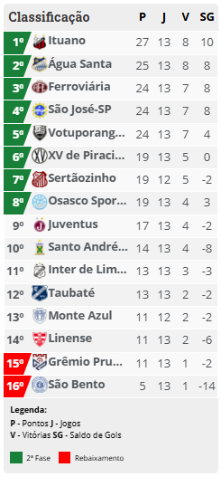 Do outro lado, o Grêmio Prudente vive situação dramática. A equipe ocupa a penúltima colocação, com 11 pontos, mesma pontuação de Monte Azul e Linense, mas atrás nos critérios de desempate. Um novo tropeço pode, dependendo da combinação de resultados, antecipar o rebaixamento para a Série A3 de 2027.