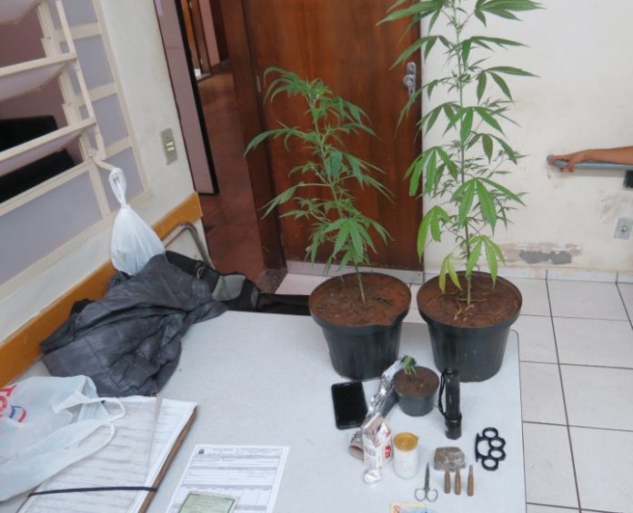 Em buscas na residência do rapaz, foram localizadas 3 munições intactas, três pés de maconha e um pino de cocaína.