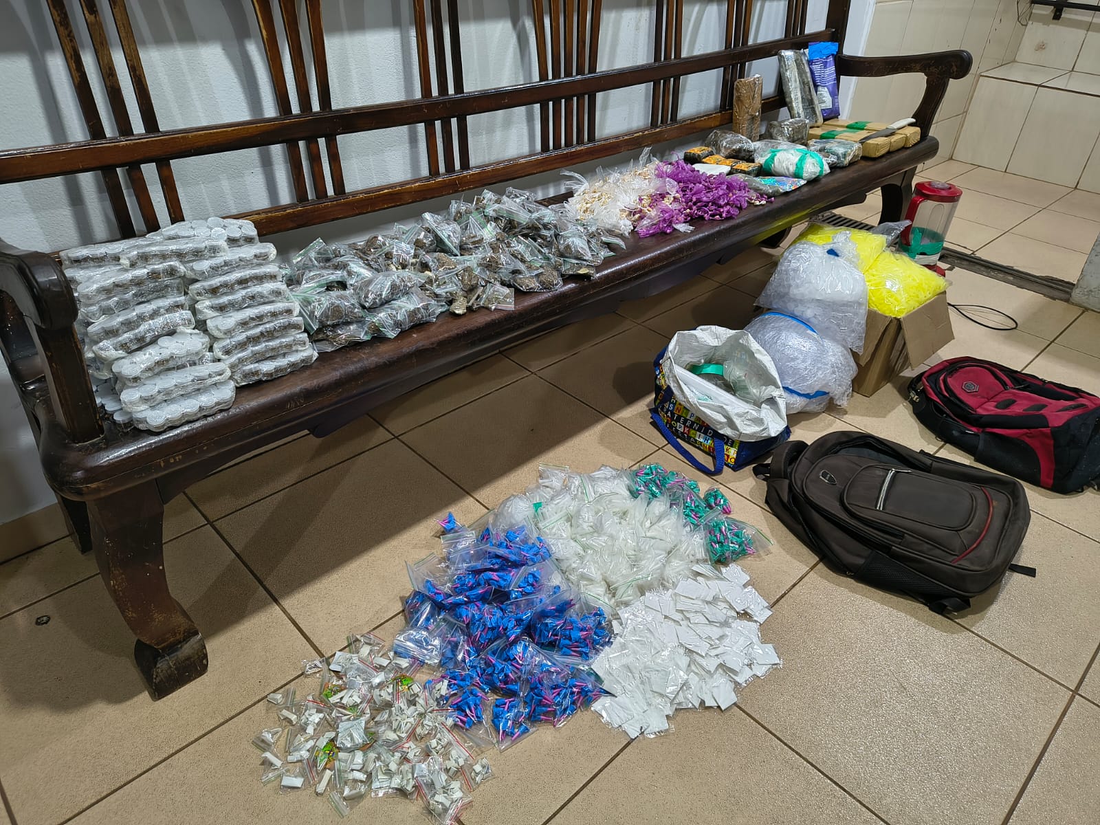 Ao todo, foram apreendidos mais de 20 quilos de drogas, além de balanças de precisão, milhares de pinos vazios, objetos para embalo e um celular. O detido foi assistido por advogado, que deverá adotar as medidas cabíveis.