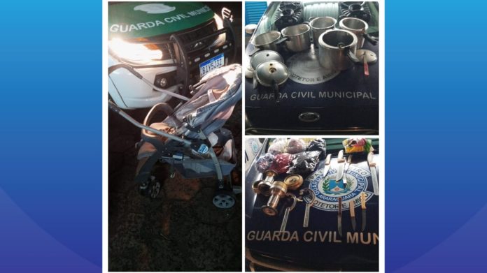Entre os itens levados estavam um carrinho de bebê, facas de cozinha e de açougue, chaves e componentes de hidrante, roupas íntimas, caixas de som, panelas de pressão e tampas.