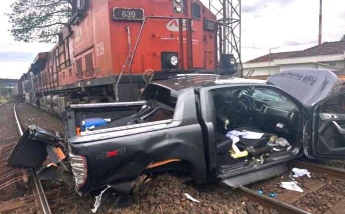 Idoso que teve caminhonete atingida por trem morre no hospital