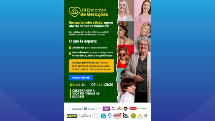 A Prefeitura de Araraquara realiza, neste sábado (4), das 9h às 12h30, o III Encontro de Gerações, no Parque Infantil. A proposta é celebrar a vida em todas as idades, em alusão ao Dia Internacional da Melhor Idade e ao Dia das Crianças, comemorados nos dias 1º e 12 de outubro, respectivamente.