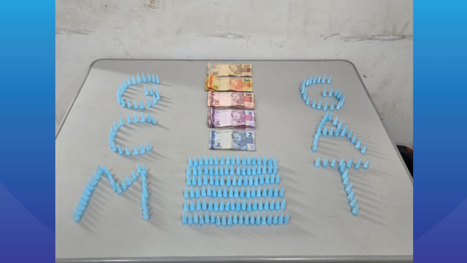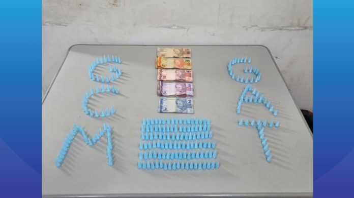 Durante a ação, os guardas localizaram dinheiro com o adolescente e, em buscas realizadas no imóvel abandonado, encontraram uma sacola com centenas de microtubos da mesma substância, além de mais dinheiro em espécie. Ao todo, foram apreendidos 235 microtubos com material análogo à cocaína e R$ 600,00.