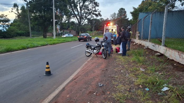 No início da noite desta segunda-feira (28), um casal sofreu um acidente na Avenida Manoel de Abreu, no trecho entre Araraquara e Américo Brasiliense, próximo à rotatória do Lar Nosso Ninho.