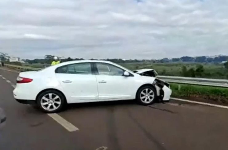 Carro colide contra defensa metálica na SP-225, em Araraquara