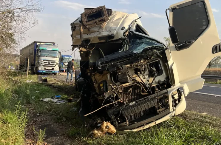 Grave acidente envolvendo dois caminhões na Rodovia Washington Luís em Matão...