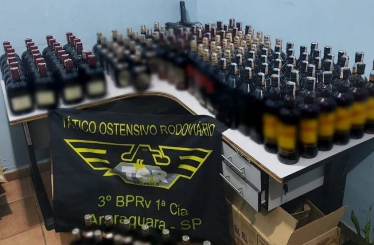 Polícia Rodoviária aborda veículo carregado com whisky falsificado