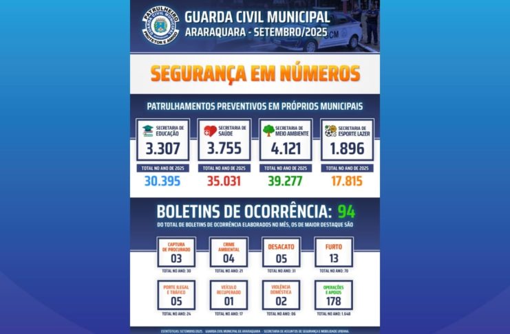 GCM registra 94 ocorrências e amplia patrulhamento em setembro
