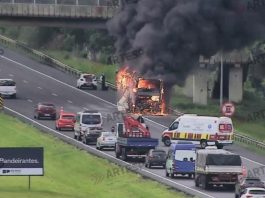 Ônibus com funcionários da Unesp de Araraquara pega fogo na rodovia...