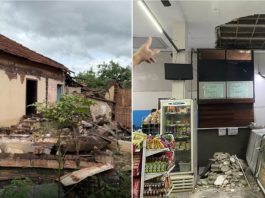 Cobertura de casa e forro de mercearia caem devido as chuvas