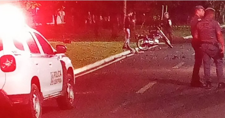 Dupla colide motocicleta contra viatura da PM durante tentativa de fuga...