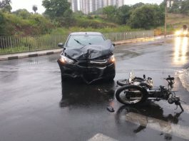Acidente entre carro e moto deixa dois feridos no Jardim Botânico