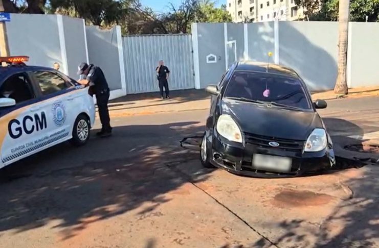 Asfalto afunda e veículo cai em buraco em bairro de Araraquara