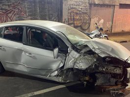 Motociclista fica ferido após colisão com carro que fugiu em cruzamento...