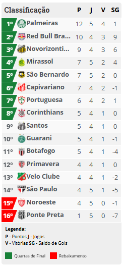O Palmeiras assumiu provisoriamente a liderança com 12 pontos, enquanto o São Paulo segue com quatro pontos, em 14º lugar, uma posição acima da zona de rebaixamento.
