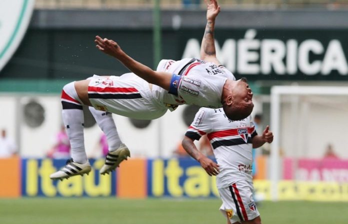 A resposta paulista aconteceu aos 14 minutos. Luiz Araújo entrou na área pelo lado direito e levantou para o outro lado. Chávez vinha de trás em velocidade e cabeceou de cima para baixo. A bola tocou no chão, no travessão e saiu. Lance incrível.