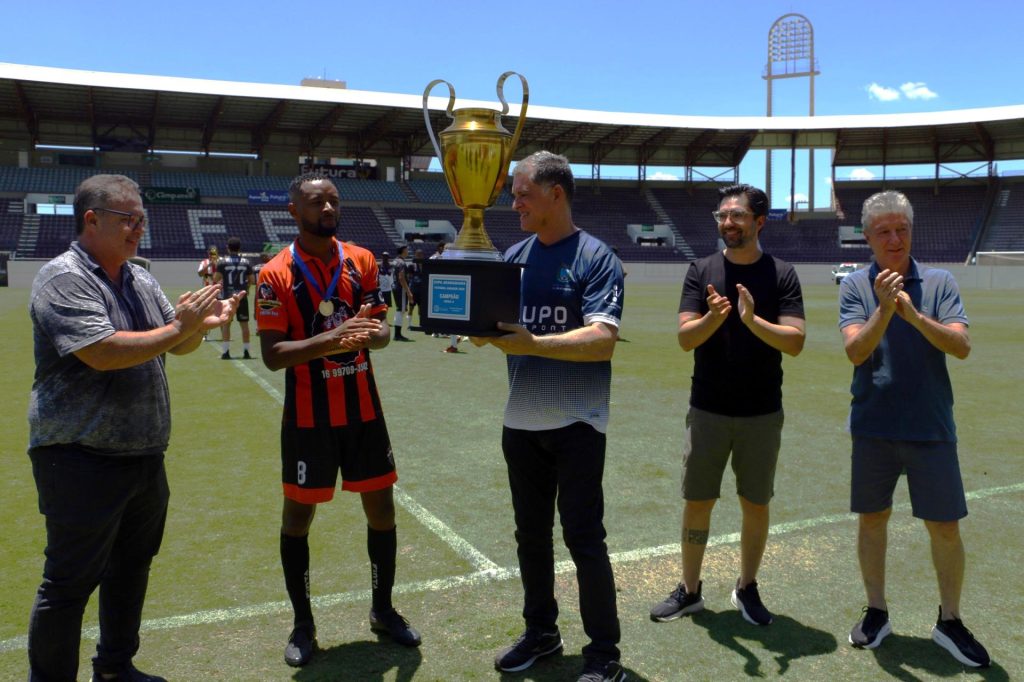 Ao final da partida, a cerimônia de premiação coroou o esforço dos atletas: o troféu foi entregue pelas mãos do prefeito, que junto ao secretário e aos vereadores fez a entrega das medalhas aos campeões — um momento de reconhecimento público ao empenho e à dedicação dos participantes.