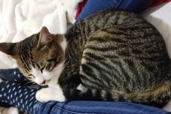 O gato, que tem pelagem rajada, cinza e branca, tem manchinhas nas bochechas e fugiu nas proximidades do colégio Coeducar. Ele usava uma coleira.