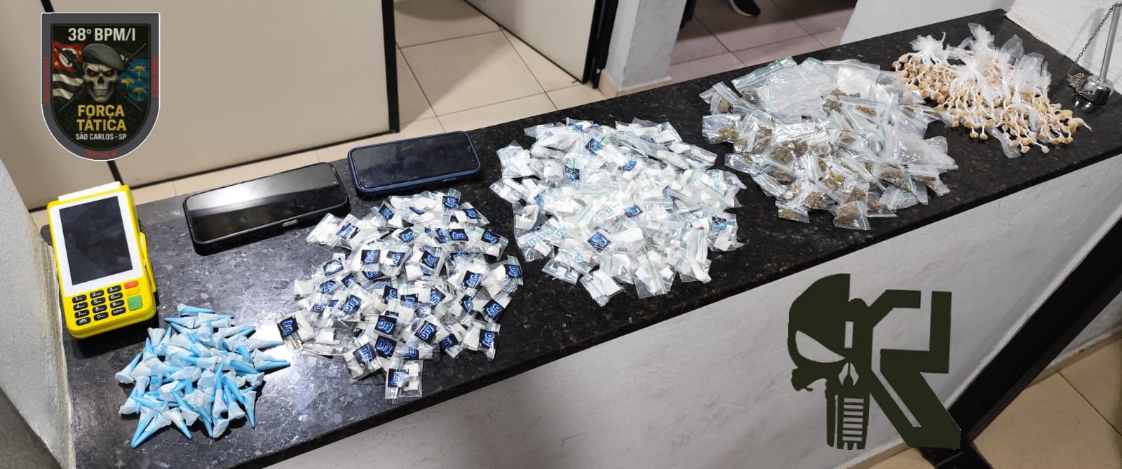 Segundo informações, equipes da Força Tática e da ROCAM realizavam patrulhamento na região do CDHU quando abordaram o suspeito. Na sacola que ele carregava, os policiais encontraram entorpecentes.